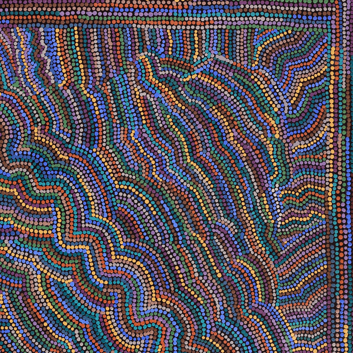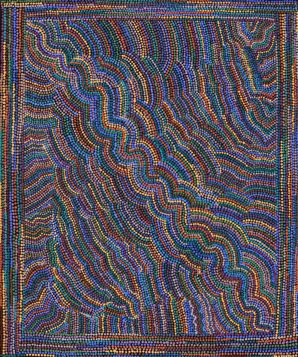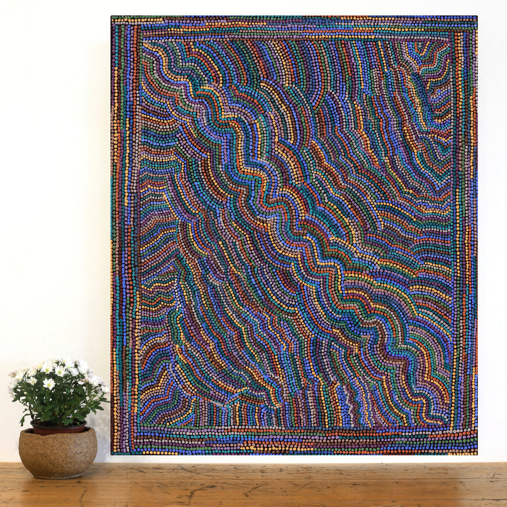 Anita Nakamarra Gibson, Ngapa Jukurrpa (Wasserträumen) – Puyurru, 91 x 76 cm