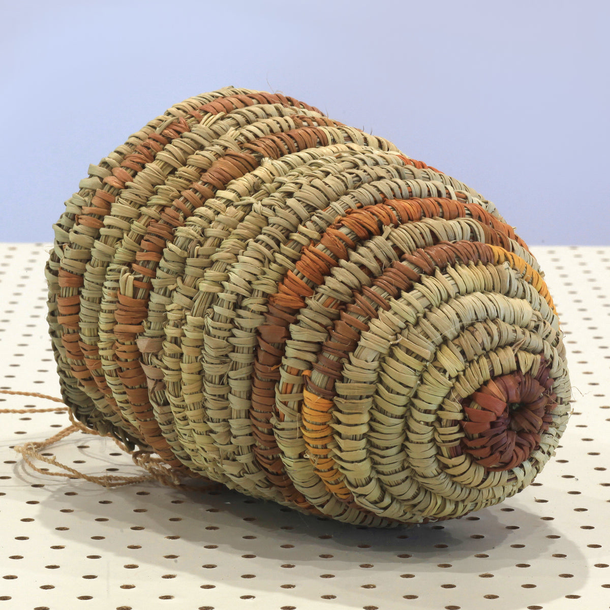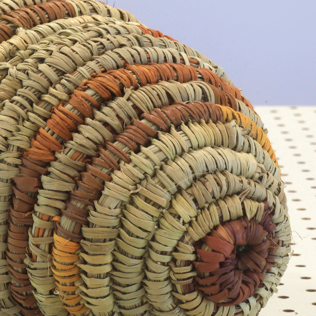 - Materialien: Pandanus, natürliche Farbstoffe und Schnur