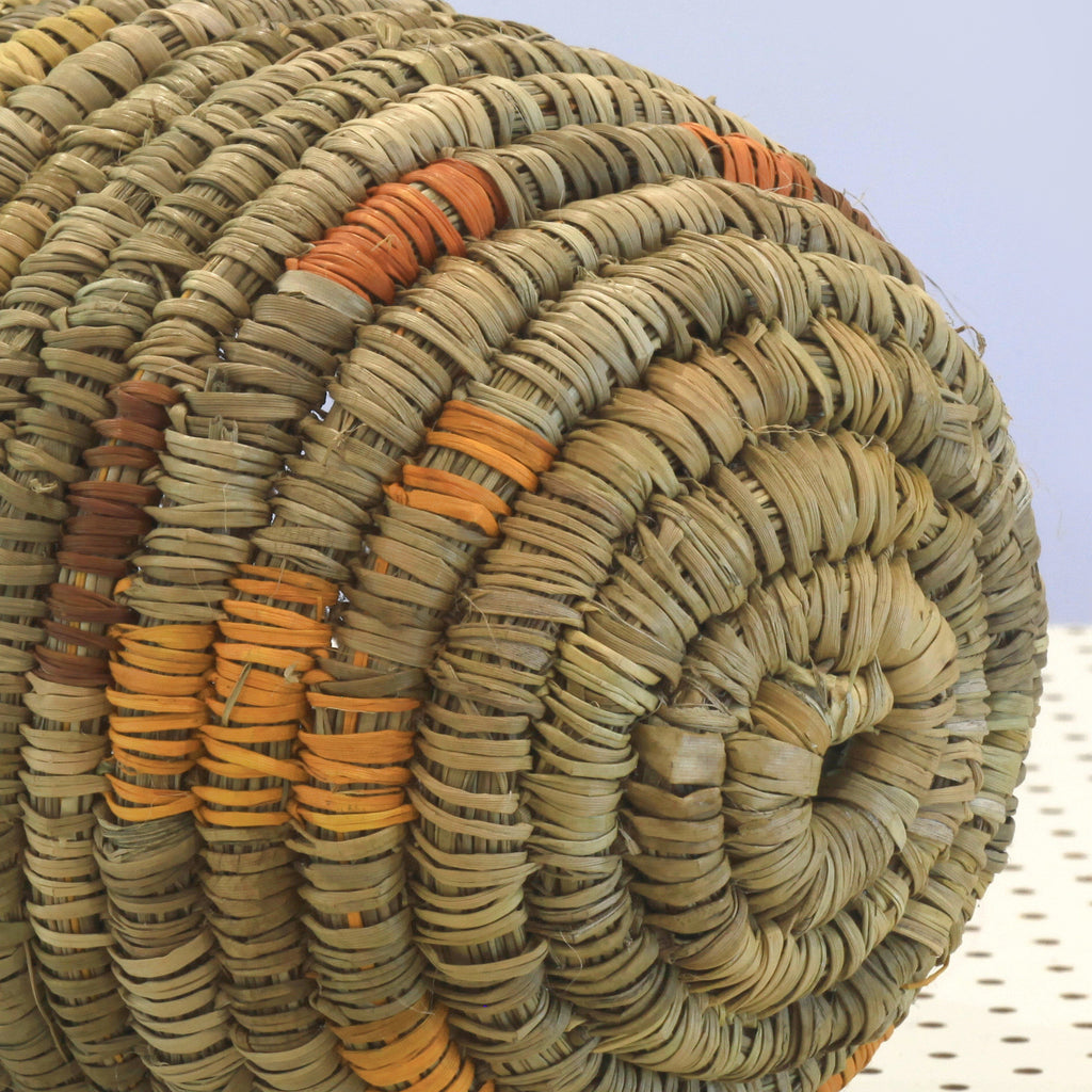 - Materialien: Pandanus, natürliche Farbstoffe und Schnur