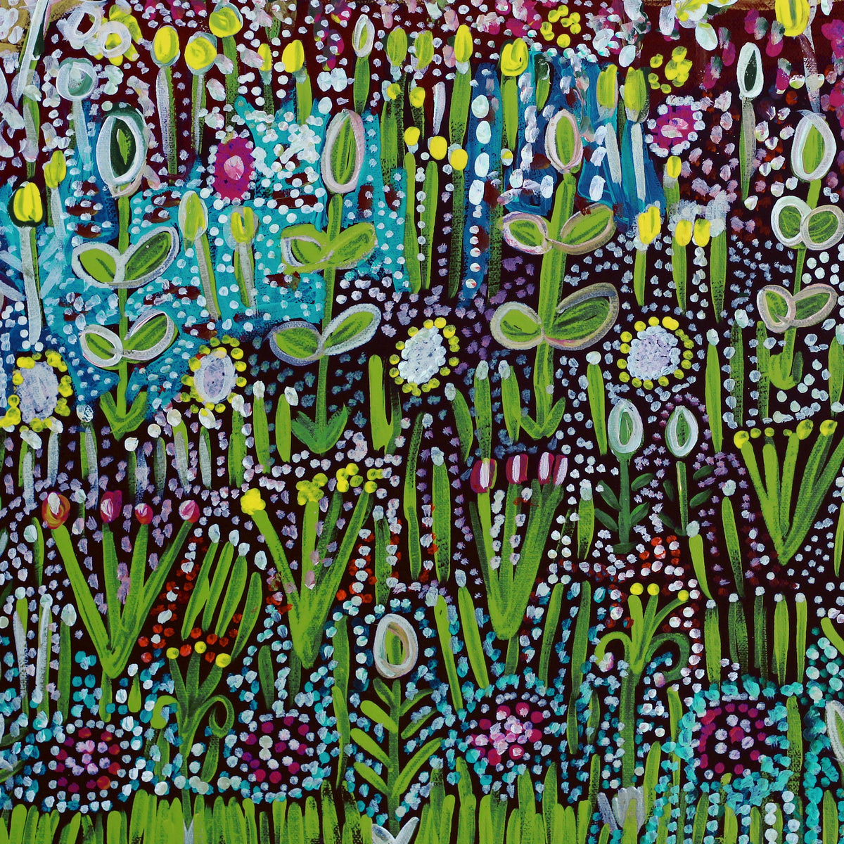Unter den leuchtenden Farben und detaillierten Markierungen von Gwenneth Blitners magischen Buschlandschaften verbirgt sich eine tiefe Verbindung zu einem Land, das oft von Sehnsucht, Angst und Verlust geprägt ist.