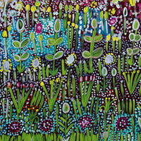 Wie Gertie Huddleston und Maureen Thompson, zwei Malerinnen aus Ngukurr, die vor ihr kamen, sind Gwenneths Gemälde reichhaltige, detaillierte Wandteppiche aus leuchtender Acrylfarbe auf Leinwand.