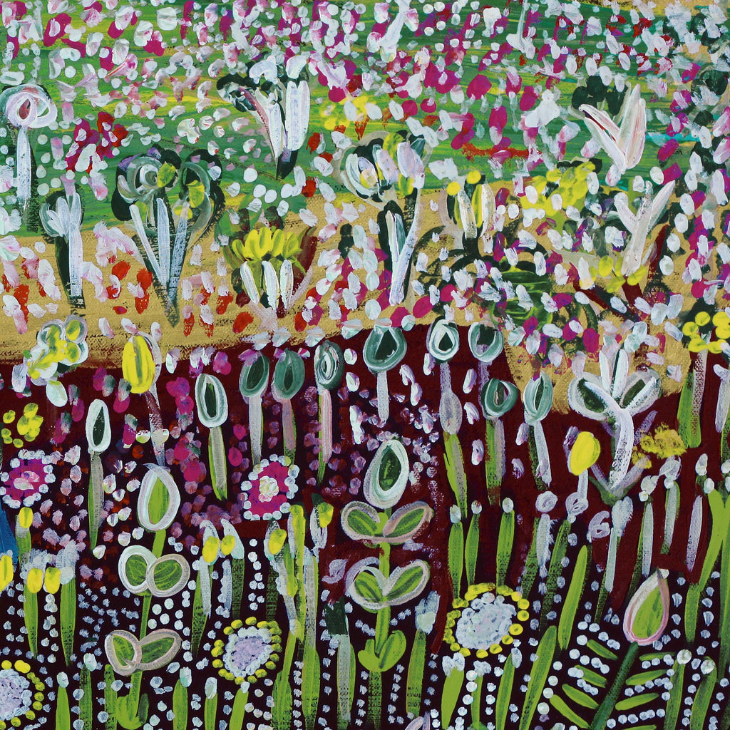 „Ich male mein Land, weil es ein magischer Ort ist“, sagt sie. „Es ist voller Leben.“ Sie können jede Art von Buschfutter bekommen. Sie können angeln und jagen gehen und Früchte und Samen sammeln, um sie zu essen.'