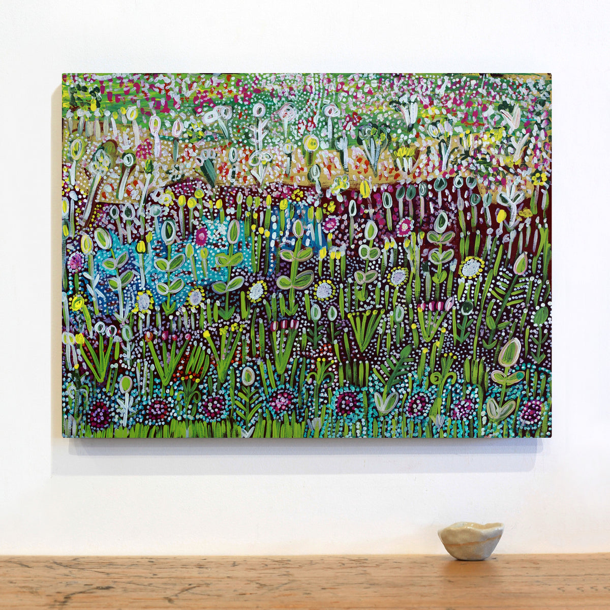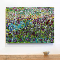 Bevor sie mit dem Malen beginnt, schließt Gwenneth die Augen, zaubert ein Bild vor ihr geistiges Auge und verwendet dann sanfte Rosatöne, leuchtende Grüntöne und goldene Blitze, um darzustellen, wie schön und lebendig ihr Land ist.