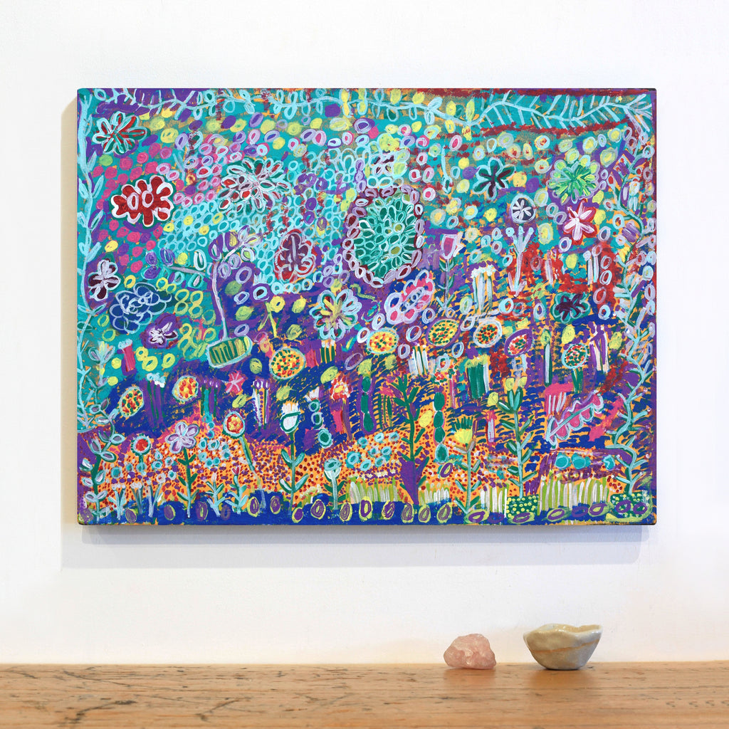 Unter den leuchtenden Farben und detaillierten Markierungen von Gwenneth Blitners magischen Buschlandschaften verbirgt sich eine tiefe Verbindung zu einem Land, das oft von Sehnsucht, Angst und Verlust geprägt ist.