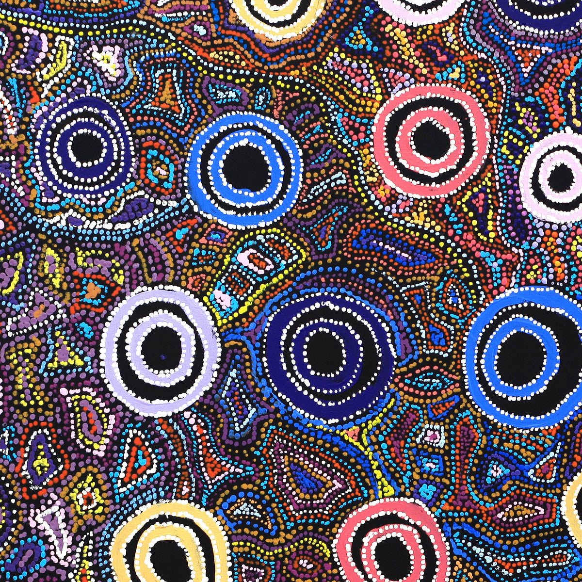 Der Ort für dieses Dreaming ist Yumari, eine Felsenansammlung westlich von Kintore in der Gibson-Wüste. Yumari ist der Ort einer verbotenen Liebesbeziehung zwischen einem Japaljarri-Mann und einer Nangala-Frau. Dieser Traum wurde dem Künstler von einem Pintupi-Mann weitergegeben. In zeitgenössischen Warlpiri-Gemälden wird die traditionelle Ikonographie zur Darstellung des Jukurrpa, zugehöriger Stätten und anderer Elemente verwendet. In dieser Arbeit werden häufig konzentrische Kreise verwendet, um „Warnirri“ (Felslöcher) darzustellen.