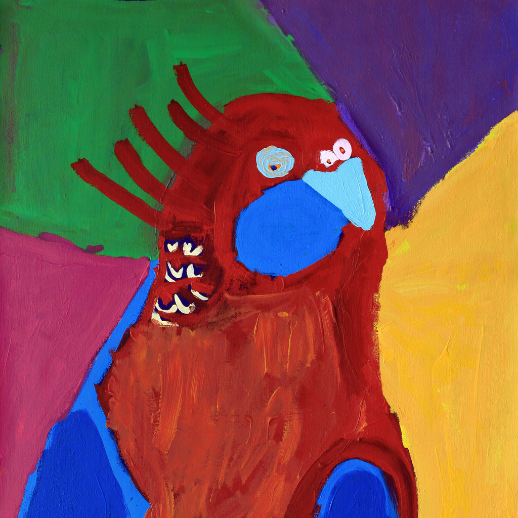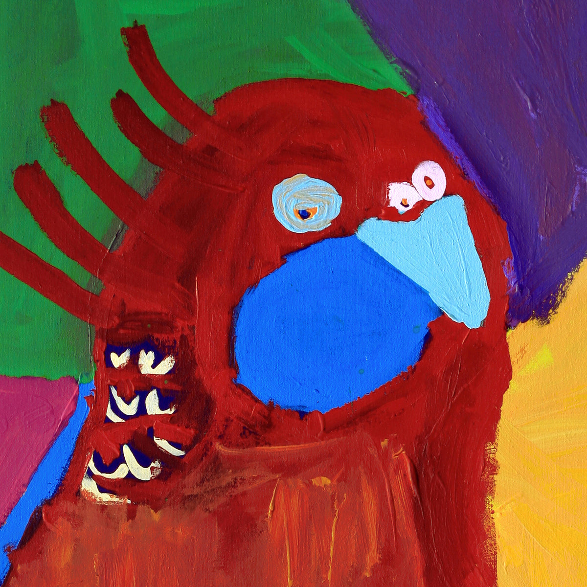 Die in diesem Gemälde gezeigte Jukurrpa-Stätte für Ngatijirri (Wellensittich [Melopsittacus undulates]) befindet sich in Yangarnmpi, südlich von Yuendumu. „Ngatijirri“ sind kleine, hellgrüne Vögel aus Zentralaustralien, die in der Gegend von Yuendumu häufig anzutreffen sind, besonders nach den Sommerregenfällen. Männer jagten nach „Ngatijirri“-Nestern und raubten ihnen Eier und Jungvögel, die beide als Delikatessen gelten. Die Männer gingen auch auf die Jagd nach ausgewachsenen, fliegenden „Ngatijirri“, die sie töteten, indem sie Äste schwangen, Stöcke oder „Karli“ (Bumerangs) töteten, um die fliegenden Vögel zu treffen. Die „Ngatijirri“ reisten von Patirlirri in der Nähe von Willowra östlich von Yuendumu nach Yangarnmpi und reisten weiter nach Marngangi, nordwestlich von Mount Dennison und westlich von Yuendumu. Jedes Mal, wenn die Herde der angestammten „Ngatijirri“ landet, führen sie Zeremonien durch, singen und tanzen, während sie fliegen und in den Bäumen schlafen. Die Orte dieser Zeremonien sind in diesem Gemälde als konzentrische Kreise dargestellt, während kreuzartige Formen die Fußabdrücke der Vögel auf dem Boden darstellen und einen Hinweis auf die großen Schwärme von „Ngatijirri“ geben, die in der Nähe von Yangarnmpi und anderen Orten in der Nähe zu finden sind nach Yuendumu. Nach guten Regenfällen kann sich „ngatijirri“ mehrmals erfolgreich vermehren, was in kurzer Zeit zu einer Explosion der Population führt. Hüter der Ngatijirri Jukurrpa sind Napaljarri/Nungarrayi-Frauen und Japaljarri/Jungarrayi-Männer.