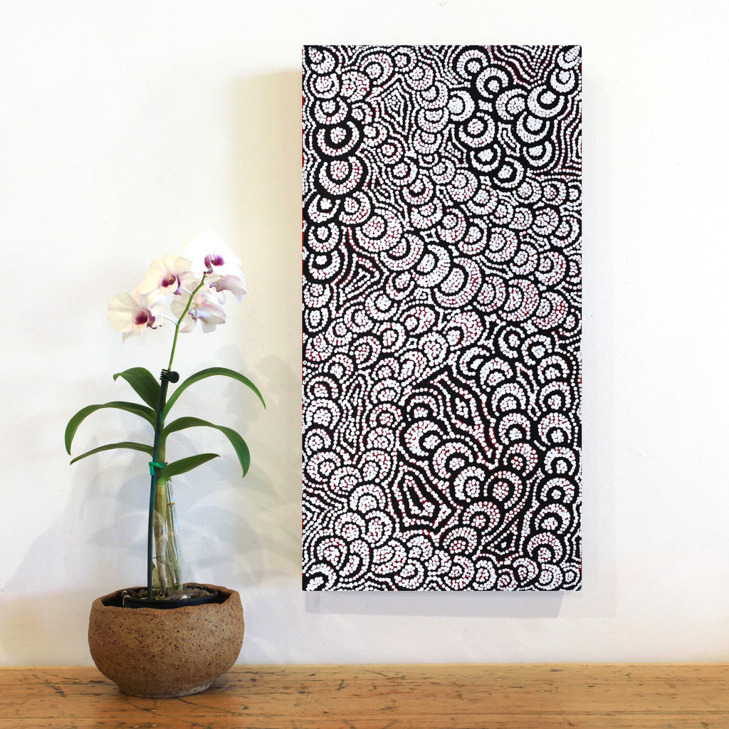 Melinda Napurrurla Wilson, Lukarrara Jukurrpa (Desert Fringe-Rush Seed Dreaming), 61x30cm