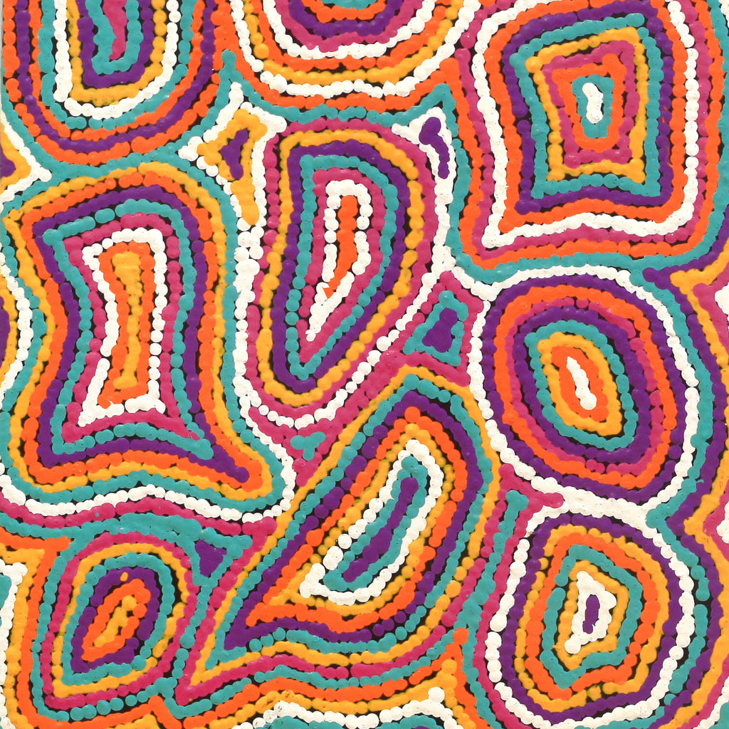 Sarah begann 2013 bei der Warlukurlangu Artists Aboriginal Corporation zu malen, einem von Aborigines geführten Kunstzentrum in Yuendumu. Das Kunstzentrum besucht Nyirripi regelmäßig, um Leinwand, Farbe und Pinsel für die Künstler abzugeben und fertige Kunstwerke abzuholen. Sie malt das Jukurrpa ihrer Großmutter, Geschichten über eine Frauenzeremonie in der Nähe von Pikilyi (Vaughan Springs). „ Ich schaue meiner Großmutter beim Malen zu und höre mir ihre Geschichten an .“ Diese Geschichten werden seit Jahrtausenden von Generation zu Generation weitergegeben und beziehen sich direkt auf das Land, seine Besonderheiten sowie die Pflanzen und Tiere, die es bewohnen. Sara findet das Malen entspannend und nutzt eine uneingeschränkte Palette, um eine moderne Interpretation ihrer traditionellen Kultur zu entwickeln.