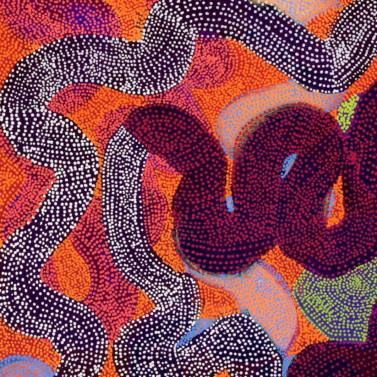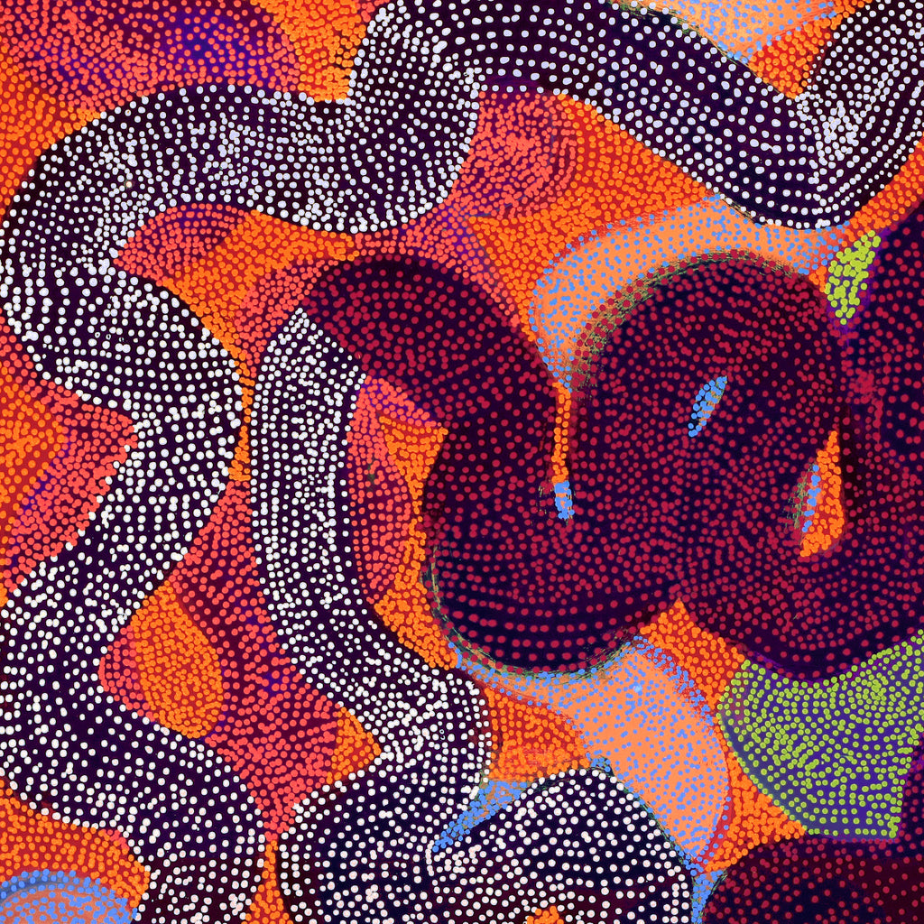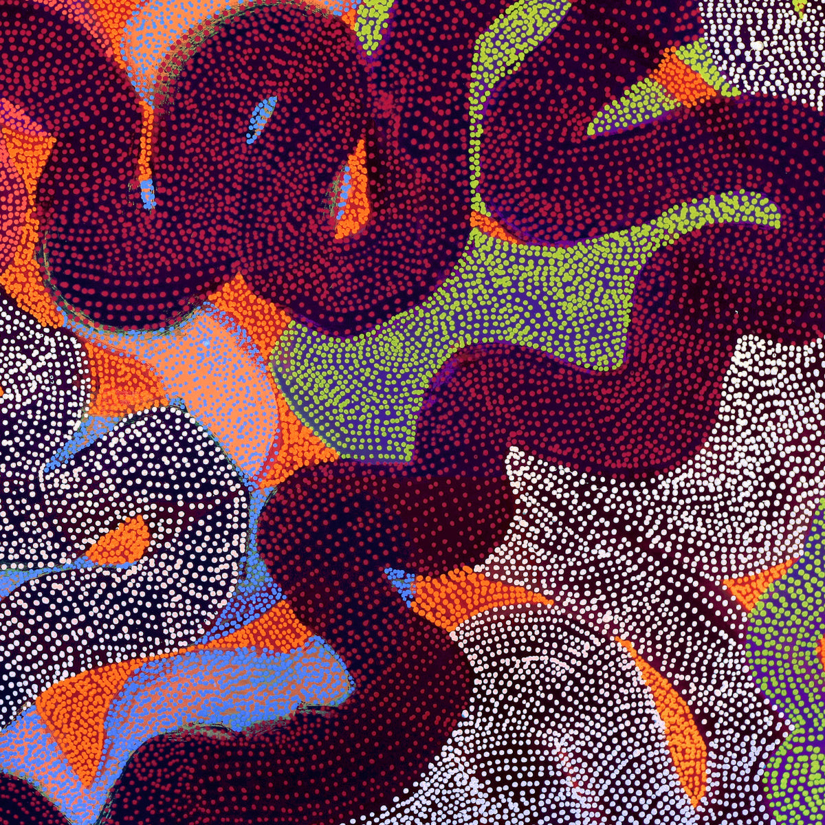 Vanetta Nampijinpa Hudson, Warlukurlangu Jukurrpa (Träumendes Feuerland), 122x122cm