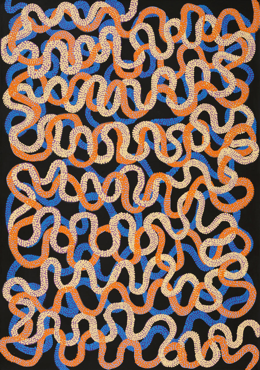 Vanetta Nampijinpa Hudson, Warlukurlangu Jukurrpa (Träumendes Feuerland), 152 x 107 cm