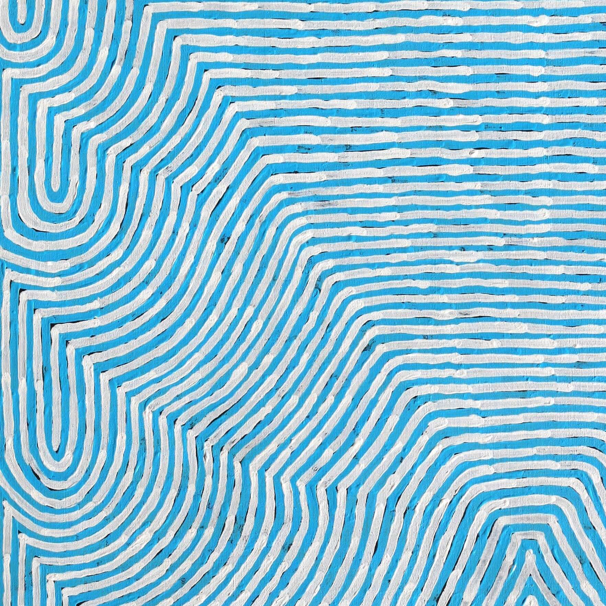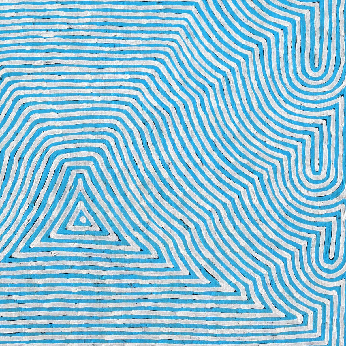 This painting depicts a portion of the Tingari cycle, a very important collection of Dreaming narratives from the Western Desert region. The country that this painting depicts is located far to the west of Yuendumu, and spans a vast area of land across the Gibson and Great Sandy Deserts in Western Australia. Aboriginal groups that paint the Tingari cycle include the Pintupi, Kukatja, Ngarti, and Walmajarri peoples, among others.