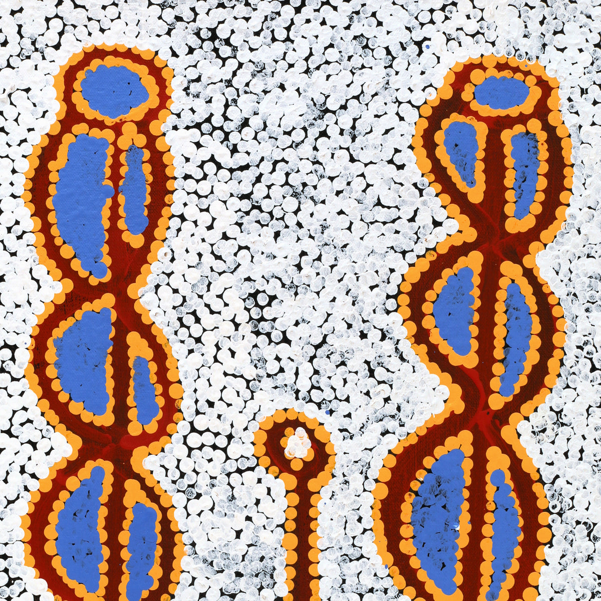 Bernard has been painting with Warlukurlangu Artists Aboriginal Corporation, an Aboriginal owned and governed art centre located in Yuendumu since 2012. He paints his grandfather’s Pamapardu Jukurrpa (Flying Ant Dreaming), stories that relate directly to his land, its features and the plants and animals that inhabit it. They were passed down to him by his parents and their parents before them for millennia. Bernard uses traditional iconology and an unrestricted palette to develop a modern interpretation of his traditional culture.
