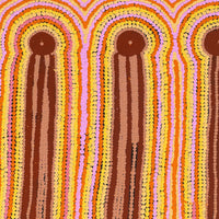Chantelle Napanangka Williams was born in 1999 and attends the local School in Yuendumu, a remote Aboriginal community located 290 km north-west of Alice Springs in the NT of Australia. During the School holidays the children from the local school are encouraged to visit the Warlukurlangu Artists Aboriginal Corporation, an Aboriginal owned and governed art centre located in Yuendumu, to paint their Jukurrpa or Dreaming stories. They are provided with an unrestricted palette of acrylic paint and small boards. Chantelle participated in the Art program.