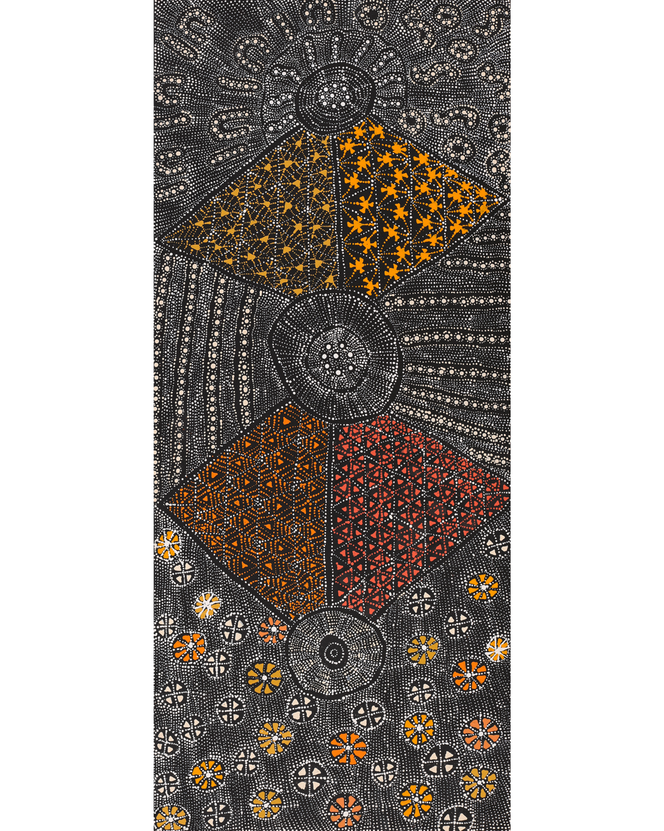 Hilda Nakamarra Rogers, Lukarrara Jukurrpa (Desert Fringe-rush Seed Dreaming), 107x46cm