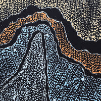 The site depicted in this painting is Pirlinyarnu (Mt. Farewell), about 165 km west of Yuendumu in the Northern Territory. The ‘kirda’ (owners) for the water Dreaming site at Pirlinyarnu are Nangala/Nampijinpa women and Jangala/Jampijinpa men.