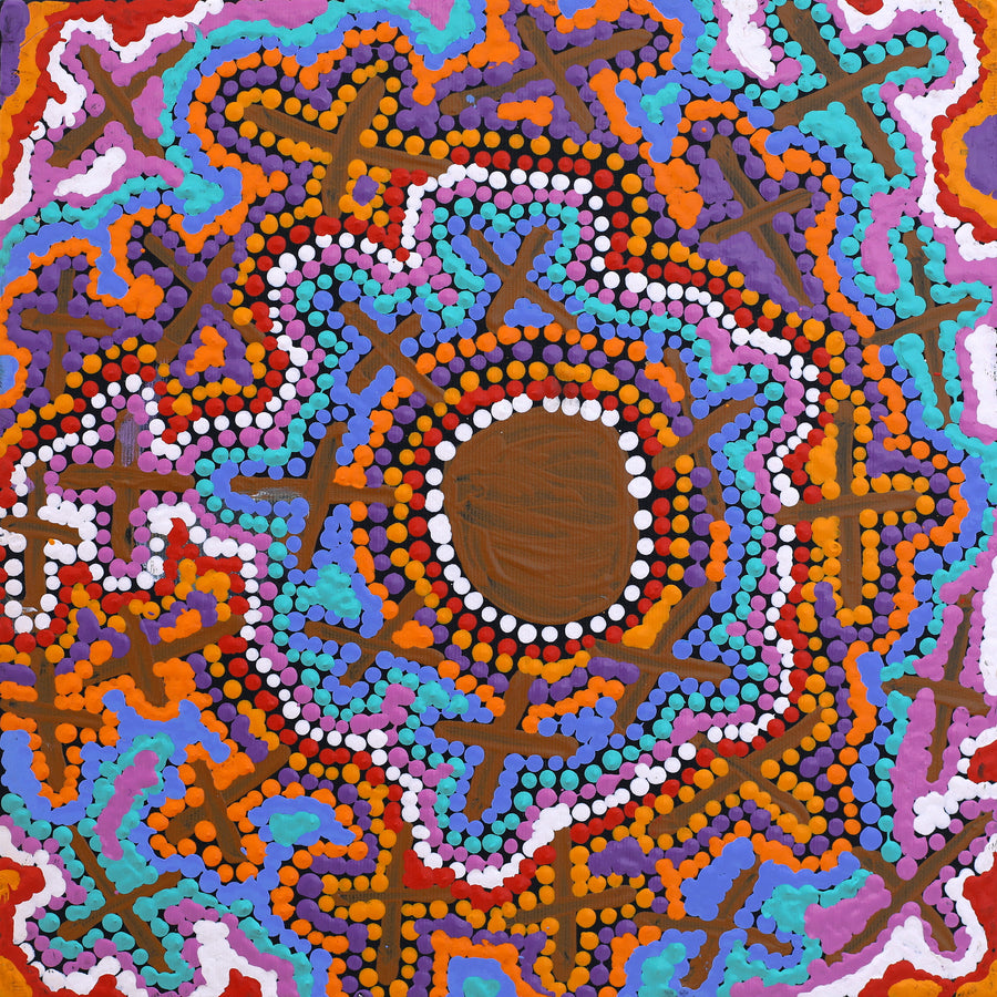 Kershini Napaljarri Collins, Ngatijirri Jukurrpa (Budgerigar Dreaming), 30x30cm