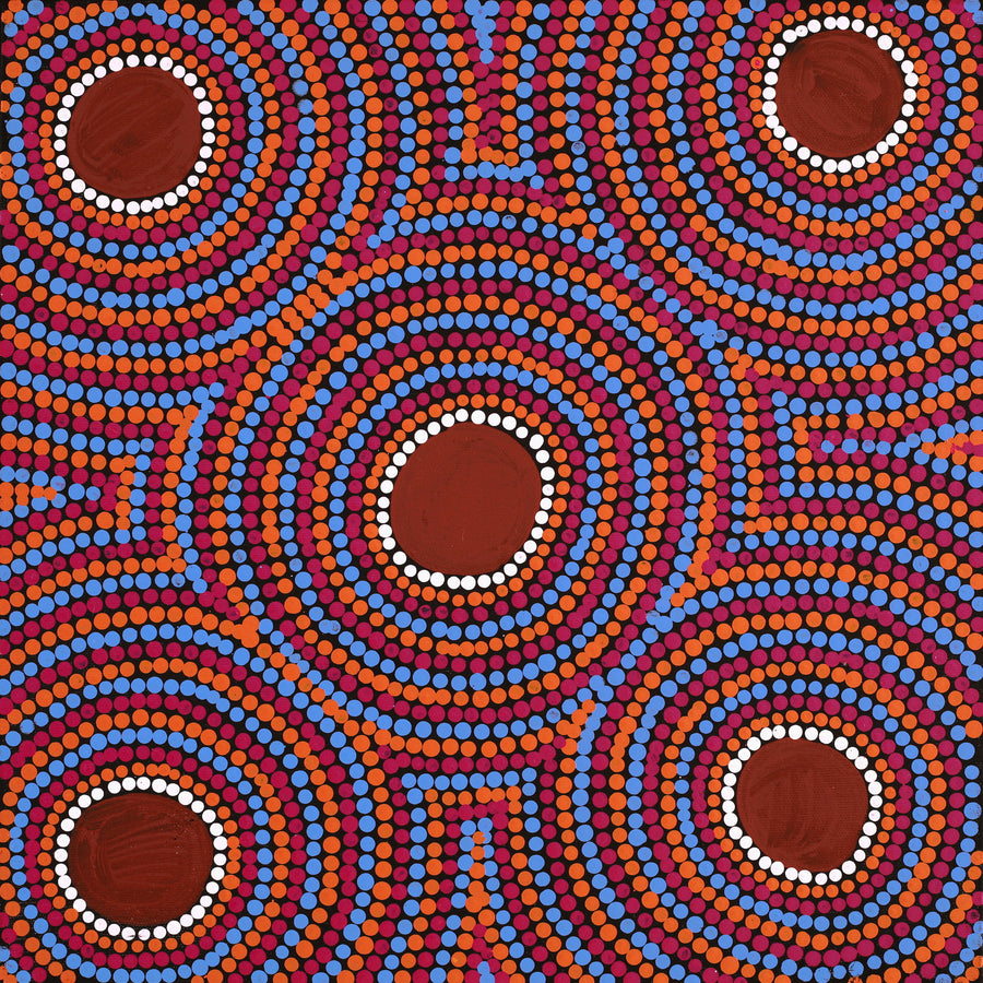 Aboriginal Artwork by Lorraine Napangardi Wheeler, Lukarrara Jukurrpa (Desert Fringe-rush Seed Dreaming), 40x40cm