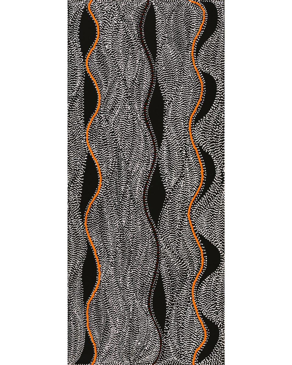 Marshall Jangala Robertson, Watiya-warnu Jukurrpa (Seed Dreaming), 107x46cm