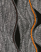Marshall was born into a family of established artists—his Dad, Jimmy Jampijinpa Robertson was a founding member of the Waniyaka Art Centre at Lajamanu and his Mum, Denise Napangardi Tasman, was also a well-known artist. Marshall watched and painted with his family and on visits to his parents’ country would be told his Jukurrpa stories. When Marshall moved to Yuendumu in 2010 he began painting with Warlukurlangu Artists Aboriginal Corporation, an Aboriginal owned and governed art centre located in Yuendumu, a remote Aboriginal community, 290 kms north-west of Alice Springs. Although he lives in Adelaide he visits often. He paints his Grandfather’s and Dad’s Jukurrpa: Ngapa Jukurrpa (Water Dreaming); Watiya-Warna Jukurrpa (Seed Dreaming) and Warna Jukurrpa (Snake Dreaming). Dreamings which relate directly to his land, its features and the plants and animals that inhabit it. He began using traditional iconography but has developed an individualistic style using pattern in a variety of contexts to depict his traditional Jukurrpa. He enjoys painting because it links him to his country and his culture.