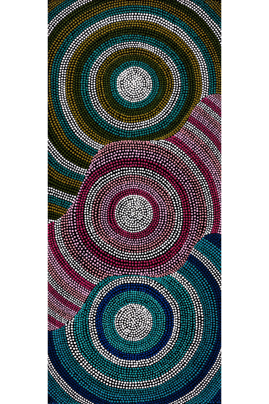 Walka Wiru Ngura Wiru means lovely country, lovely drawing. This painting is a composition of dot patterns inspired by the sandy desert features around the Tompkinson ranges of Pipalyatjara, Kalka, and Irrunytju communities where Ninuku artists work.