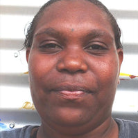 Nathania Nangala Granites was born in Alice Springs Hospital, the closest hospital to Yuendumu, a remote Aboriginal community located 290 km north-west of Alice Springs in the NT of Australia. She was born into a family of artists. Her mother is Valda Napangardi Granites and her grandmother is Alma Nungarrayi Granites, an established artist who has exhibited in Australia and overseas. Nathania grew up listening to her mother’s and her father’s Jukurrpa stories and watching her family paint. She went to the local school in Yuendumu. When she finished school she assisted Yasmin Napurrular Musharbash, taking photos for Yasmin’s study of everyday life in an Aboriginal camp. Nathania is married and has a little boy born in 2013.