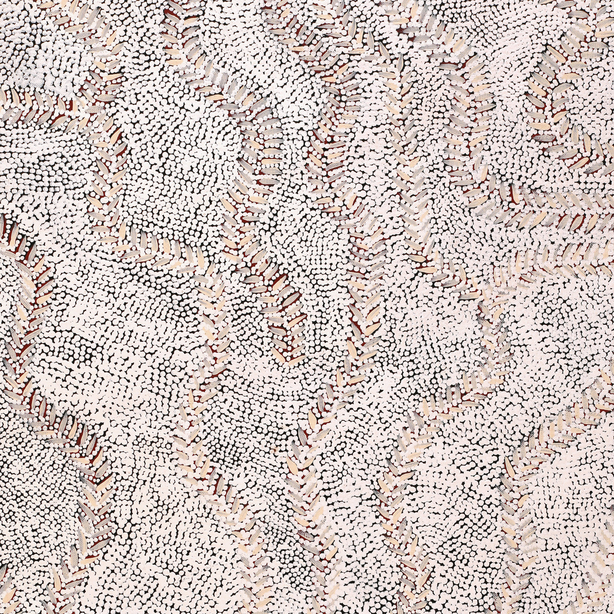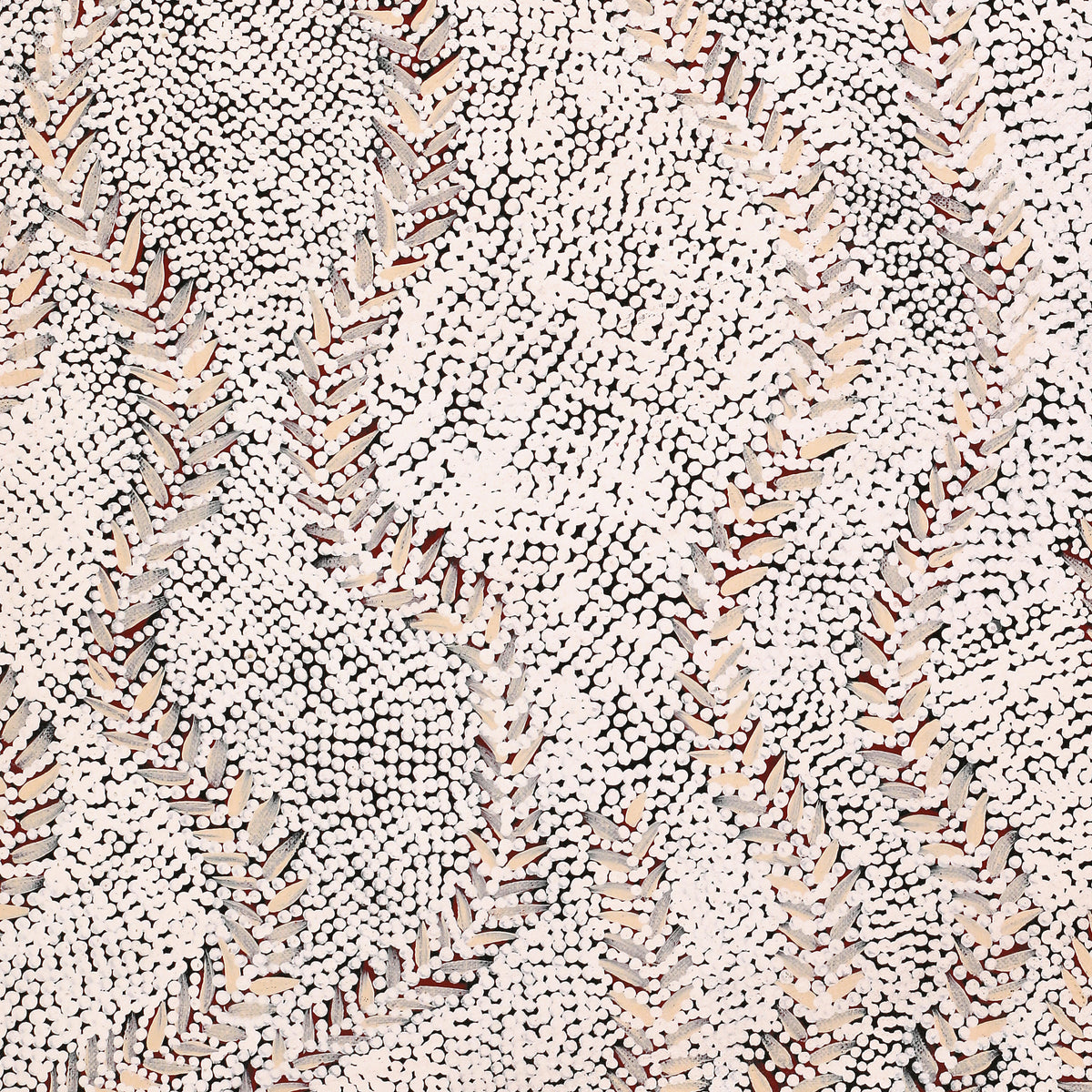Patricia Nakamarra Oldfield was born in 1982 in Alice Springs Hospital, the closest hospital to Yuendumu, a remote Aboriginal community 290 km north-west of Alice Springs in the Northern Territory of Australia. She has lived in Yuendumu most of her life. She is the daughter of two Warlukurlangu painters. Patricia is married to Sebastian Jangala Roberston and both of them are very active and positive members of the art centre. They have no children but have adopted a small boy called Favian who they look after. Patricia finished Primary School at Yuendumu High School and then left to get married. Both she and her husband are actively involved with the Mt Theo Program, in particular the Jaru Pirrjirdi Youth Development, which incorporates the Yuendumu Youth Program. Patricia has been painting with Warlukurlangu Artists Aboriginal Corporation, an Aboriginal owned and governed art centre located in Yuendumu, since 2001. She paints stories that are closely associated with her traditional country. Her main story is Warna Jukurrpa (Snake Dreaming), Dreamings that have been passed down to her from her father and his father’s father for millennia.