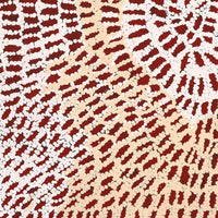Peggy Nampijinpa Brown was born in 1941 in the bush close to Yuendumu. When she was a little girl her family moved to Yuendumu, an Aboriginal settlement 290 kms north-west of Alice Springs in the NT of Australia. Peggy has been an important member of the Yuendumu Community. She participated in several organization such as the Women Night Patrol, the Mt Theo Petrol Sniffing Program, The Women Center, Warlpiri Media and of course Warlukurlangu Artists Aboriginal Association. Her participation and powerful persona has made her a women respected by all members of the Yuendumu community. Recently (2007) she was the recipient of the Order of the Australia Medal for her work in the successful Petrol sniffing program. The Yuendumu Petrol Sniffing program has served as a standard and been a replication for other communities with Petrol Sniffing problems. Peggy has been painting with Warlukurlangu Artists Aboriginal Corporation, an Aboriginal owned and governed art centre located in Yuendumu, since 1988. She paints several Jukurrpa (dreamings) but the one that features constantly is her country Warlukurlangu Jukurrpa (Fire Dreaming), country south-west of Yuendumu for which Jampijinpa/Jangala men and Nampijinpa/Nangala women have custodial responsibility.