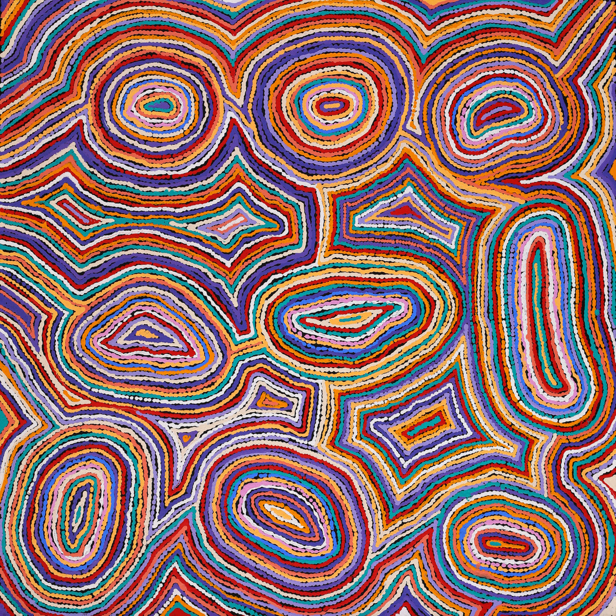 Sarah Napaljarri Simms, Mina Mina Jukurrpa (Mina Mina Dreaming), 76x76cm