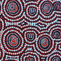 Ursula Napanangka Butcher was born in 1982 in Alice Springs. She speaks Warlpiri and lives in Nyirripi a community about 160 kms south west of Yuendumu. She paints Janganpa Jukurrpa (possum dreaming). Her grandfathers' dreamings are ngapa jukurrpa (Water dreaming) and warna jukurrpa (snake dreaming).