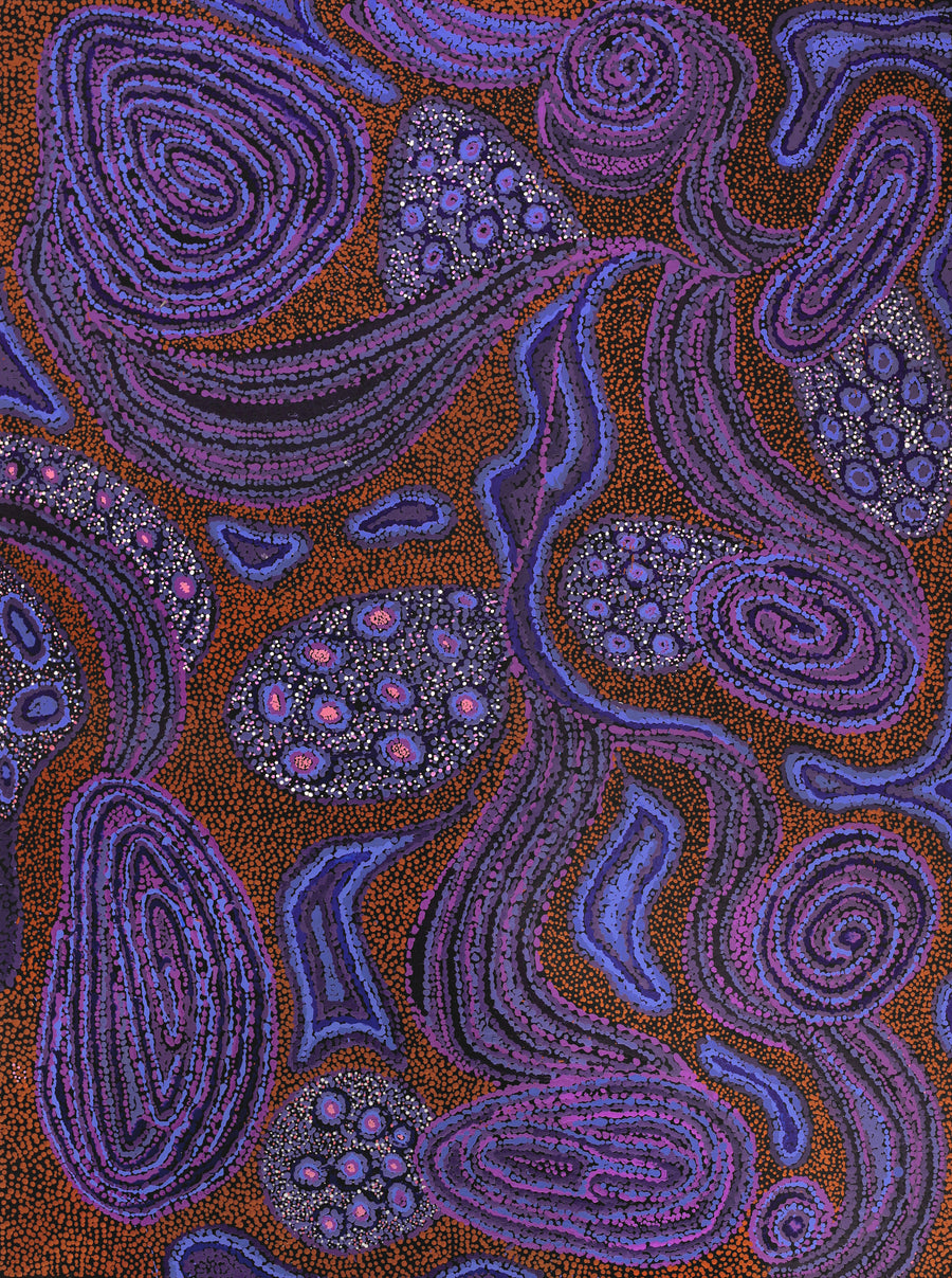 Katrina was born and went to school in Ernabella. Her mother was one of the first Ananguteachers at Ernabella Anangu School in the 1940s. On leaving school Katrina studied at Uni SA through the AnTEP program, obtaining a Bachelor of Education. She has worked in Anangu education for more than 20 years including as the Anangu School Improvement Coordinator. She first began painting at the art centre in late 2016, working initially in painting and then trying her hand at ceramic art too. Her work has been exhibited around Australia and overseas, including Sydney, Alice Springs, Darwin, Broome, Mittagong, and Brussels, Belgium. Katrina is a mother to two children and a strong advocate for children’s rights. She is a published author including as co-presenter and writer of 'Red Dirt Curriculum: Re-imagining Remote Education', presented as part of the Sidney Myer Rural Lecture series in 2013. In 2018 she won the 2018 Aunty Josie Agius Award for her work as the Wellbeing Coordinator, her current position at Ernabella Anangu School.