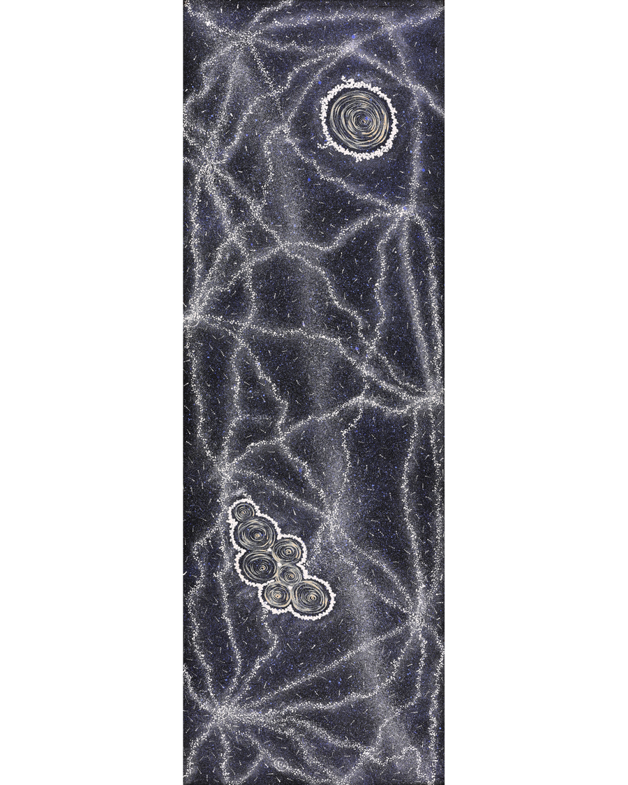 Valda Napangardi Granites is the grand-daughter of the late Paddy Japaljarri Sims (1916 – 2010) and Bessie Nakamarra Sims (1932 - 2012), two founding artists of Warlukurlangu Artists. Valda was born in 1974 in Alice Springs and grew up in Yuendumu, an Aboriginal community located 290 kms north-west of Alice Springs, where she still lives. She attended the local school. Valda has been painting with Warlukurlangu Artists Aboriginal Corporation, an Aboriginal owned and governed art centre located in Yuendumu, since 1993, She paints the Jukurrpa (Dreaming) stories passed down to her by her mother and father and their parents before them for millennia. These are creation stories which closely relate to the features and animals found in her family's traditional lands. Valda is married and has one daughter. She worked with the Yuendumu Old People's program before resigning to look after her daughter.