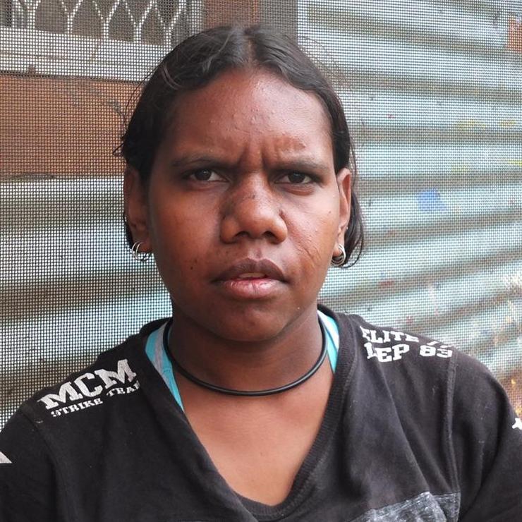 Valma Nakamarra White was born in 1997 in Alice Springs Hospital, the closest hospital to Yuendumu, a remote Aboriginal community located 290 km north-west of Alice Springs in the NT of Australia. Valerie was born into a family of artists. Her mother is Sabrina Napangardi Granites and her Grandmother is Alma Nungarrayi Granites, both established artists who have exhibited in Australia and overseas. Valma grew up listening to her mother and father’s Jukurrpa stories while watching her family paint. She went to the local school in Yuendumu, finishing off her studies at Yirara College, an Aboriginal boarding college in Alice Springs. When she finished school she worked on the Mt Theo Program and on a Walpriri Media project. She is married and has a little baby girl Cerella, born in 2013.