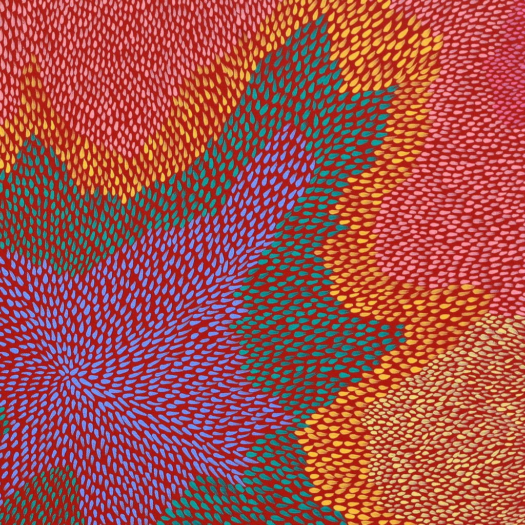 Virgillia is the grand-daughter of acclaimed Ikuntji Artists’ Alice Nampitjinpa who is the grand-daughter of one of the founding members of the acrylic painting movement in Papunya in 1972, Uta Uta Tjangala.