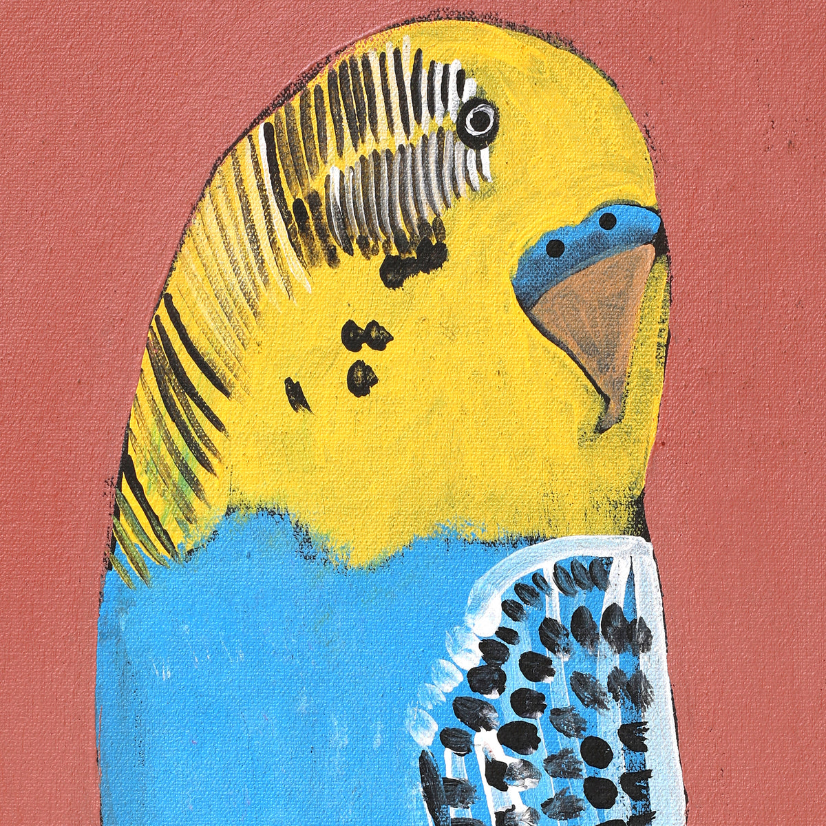 This painting depicts one of many ‘jurlpu’ (bird) species that live around Yuendumu. The bush around Yuendumu provides many different habitats for birds to live in. Many bird species live around waterholes and rivers, like the ‘pirniny-pirninypa’ (black fronted dotterel [Elseyornis melanops]) and Ngatijirri (budgerigar [Melopsittacus undulates]). Others live in the spinifex country, like the ‘nuwiyingki’ or ‘panngarra’ (cockatiel [Nymphicus hollandicus]). Still others make nests in trees, like the ‘juwayikirdi’ (grey crowned babbler [Pomatostomus temporalis]).