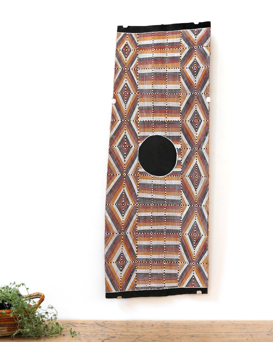 Cette œuvre provient de Maningrida Arts & Culture, basé sur le pays Kunibídji en Arnhem Land. Les artistes vivent dans des homelands couvrant plus de 7 000 km² de terre et de mer et plus de 100 domaines claniques, où de nombreuses langues distinctes sont parlées et où les communautés continuent de vivre sur leur Country.