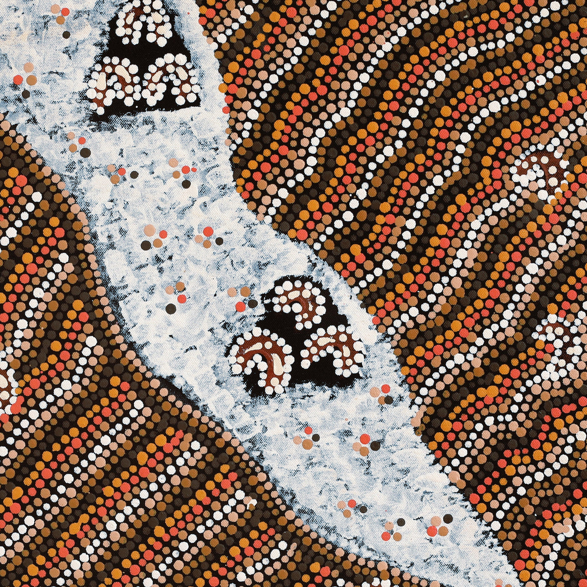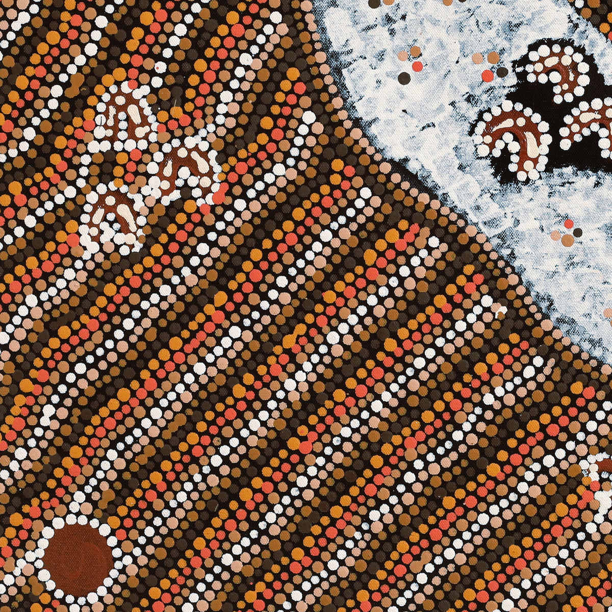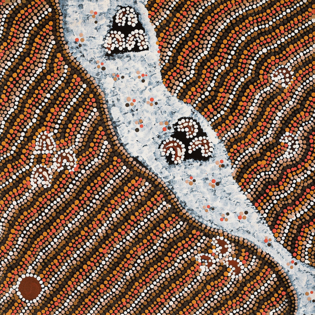 Le sujet de ce travail est Lappi Lappi, un trou rocheux près du lac Hazlett, à environ 90 km au nord-ouest du lac Mackay en Australie occidentale. Le pays appartient aux groupes de peaux Nampijinpa/Jampijinpa et Nangala/Jangala. Situé dans un bassin abrité, le trou rocheux de Lappi Lappi est une source d'eau permanente et est entouré d'une campagne riche en brousse. À l'époque du Jukurrpa (temps du rêve), de nombreuses mères avec de jeunes enfants s'y rassemblaient parce que c'était un endroit sûr où séjourner. Le trou rocheux de Lappi Lappi abrite un « warnayarra », un serpent arc-en-ciel qui voyage sous terre entre différents trous rocheux. Un jour, des femmes étaient rassemblées près du trou rocheux avec leurs enfants, chantant et dansant. Lorsque le « warnayarra » entendait le son des voix, il se dirigeait silencieusement vers elles, sous l'eau. Lorsqu’il atteignit le bord du trou rocheux, il sortit de l’eau et les mangea tous.
