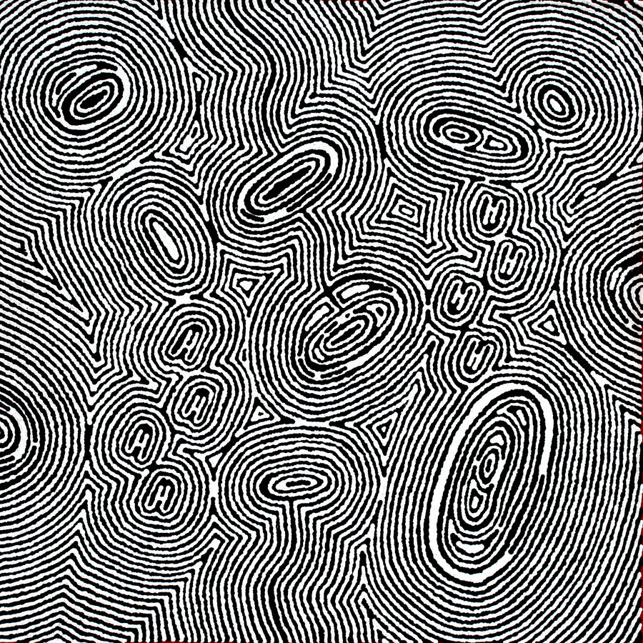 Janelle Napurrurla Wilson, Janganpa Jukurrpa (rêve d'opossum à queue de brosse) – Mawurrji, 61 x 61 cm