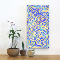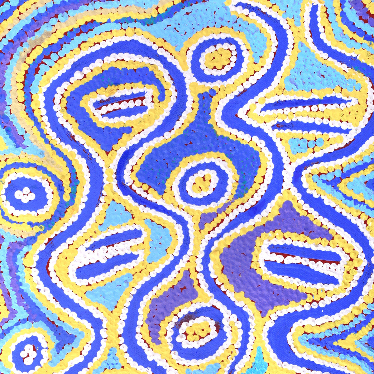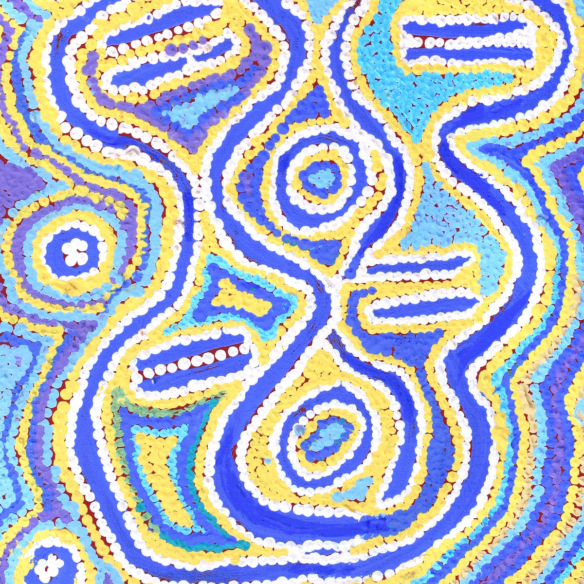Longue Maggie Nakamarra Blanc, Ngapa Jukurrpa (Rêve d'eau) - Pirlinyarnu, 61x30cm