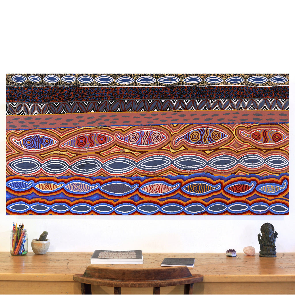 Agnes Nampijinpa Fry, Ngapa Jukurrpa (Water Dreaming) - Puyurru, 152x76cm