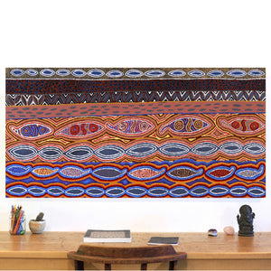 Sending paintings rolled is the best option for their safe arrival and allows us to include free shipping, provide a timely service, and maintain consistent and transparent pricing relating to the prices set by each Aboriginal Art centre.