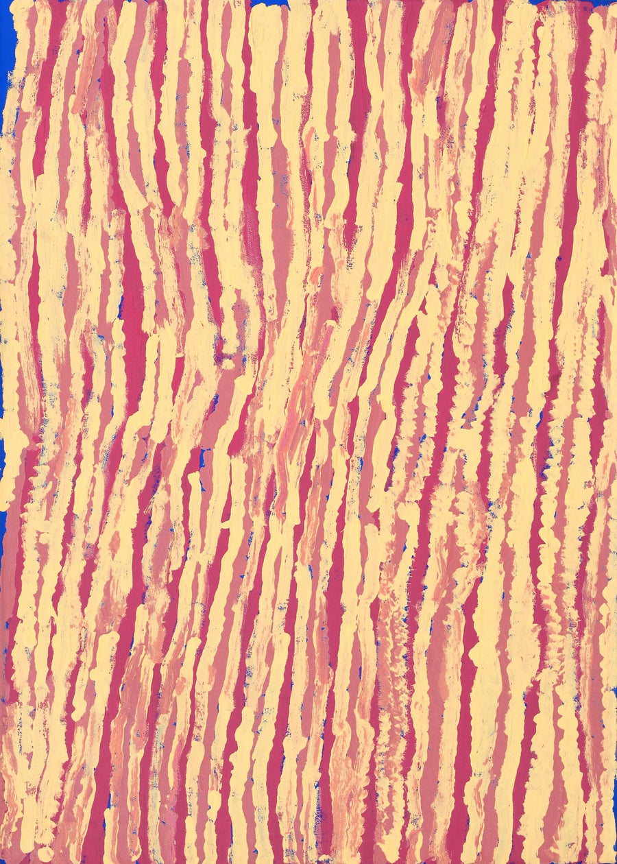 Ikuntji Artists was first established in 1992, after a series of workshops with Melbourne artist Marina Strocchi, and under the influence of the then community president, the late Esther Jugadai. The art centre was initially set up to fulfil the role of women’s centre providing services such as catering for old people and children in the community. After first experiences made in printing T-shirts, the artists began producing acrylic paintings on linen and handmade paper, which quickly gained the attention of the Australian and international art world as well as earning the centre an impressive reputation for fine art. The focus changed from a women’s centre to an art centre in 2005 with the incorporation of the art centre as Ikuntji Artists Aboriginal Corporation.