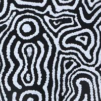 Amelia enjoys painting at the art centre and when her children were young she would tell them stories as she painted. These days, when she’s not painting she spends time with her grandchildren (all girls) and loves going on bush trips with the kids, looking for bush tucker such as bush banana, bush tomato, bush yam, and honey ants.