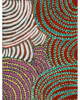 Debra paints her mother's country, which is Warnman country, surrounding Karlamilyi (Rudall River) as well as her father's country, around Kunawarritji.