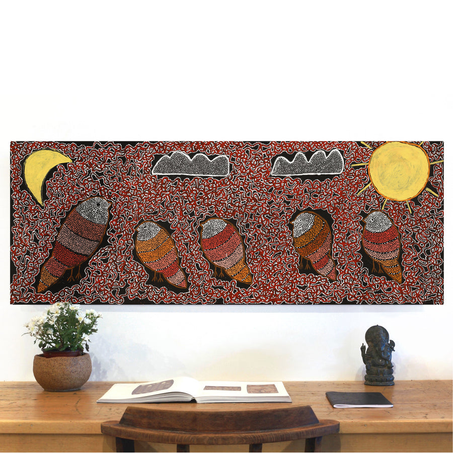 All paintings come with a certificate of authenticity provided by the community-run Aboriginal Art Centre, not us, which is the gold standard for ethical purchasing and documentation.