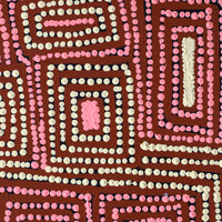 Gloria Napangardi Gill was born in 1975 in Derby, Western Australia. She spent her early years growing up in Balgo, a remote Aboriginal community located in Western Australia, linked with both the Great Sandy Desert and the Tanami Desert and eleven hours by road from Alice Springs. She went to Nulungu Catholic College in Broom and then attended the Adult Education Centre in Balgo, where she learnt life skills. She worked on the Old People’s Program in Balgo before relocating in 1997 to Nyirripi. She has one sister and three brothers, living in Lake Gregory, Tanami, WA and in Gympie, Queensland. She has been painting with Warlukurlangu Artists Aboriginal Corporation, an Aboriginal owned and governed art centre in Yuendumu, since 2010. She likes to paint her Grandfather’s Jukurrpa stories, particularly Lappi Lappi Jukurrpa, Dreamings which relate to her Grandfather’s country Lappi Lappi, near Lake Hazlett, northwest of Lake Mackay in WA, its features and the plants and animals that inhabit it. These stories were passed down to her by her father and his father’s father before him for millennia. Gloria likes to paint as she likes working with colour and design. When she’s not painting she likes to visit her family in Balgo.