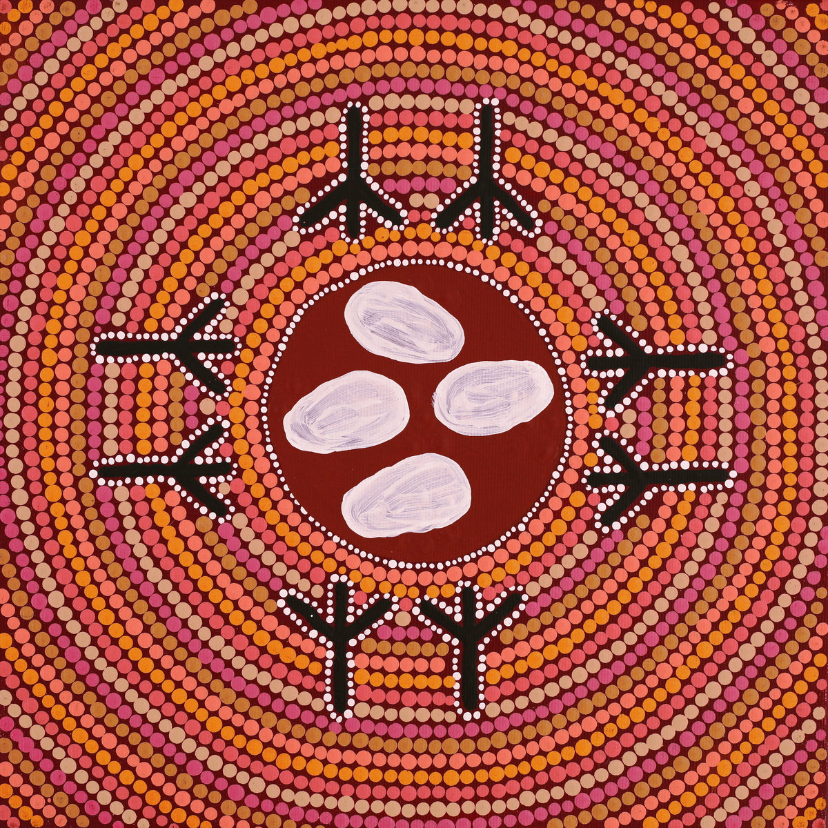 Glorine Nungarrayi Martin, Warlawurru Jukurrpa (Wedge-tailed Eagle Dreaming) - Wakurlpa & Yuwarli, 30x30cm