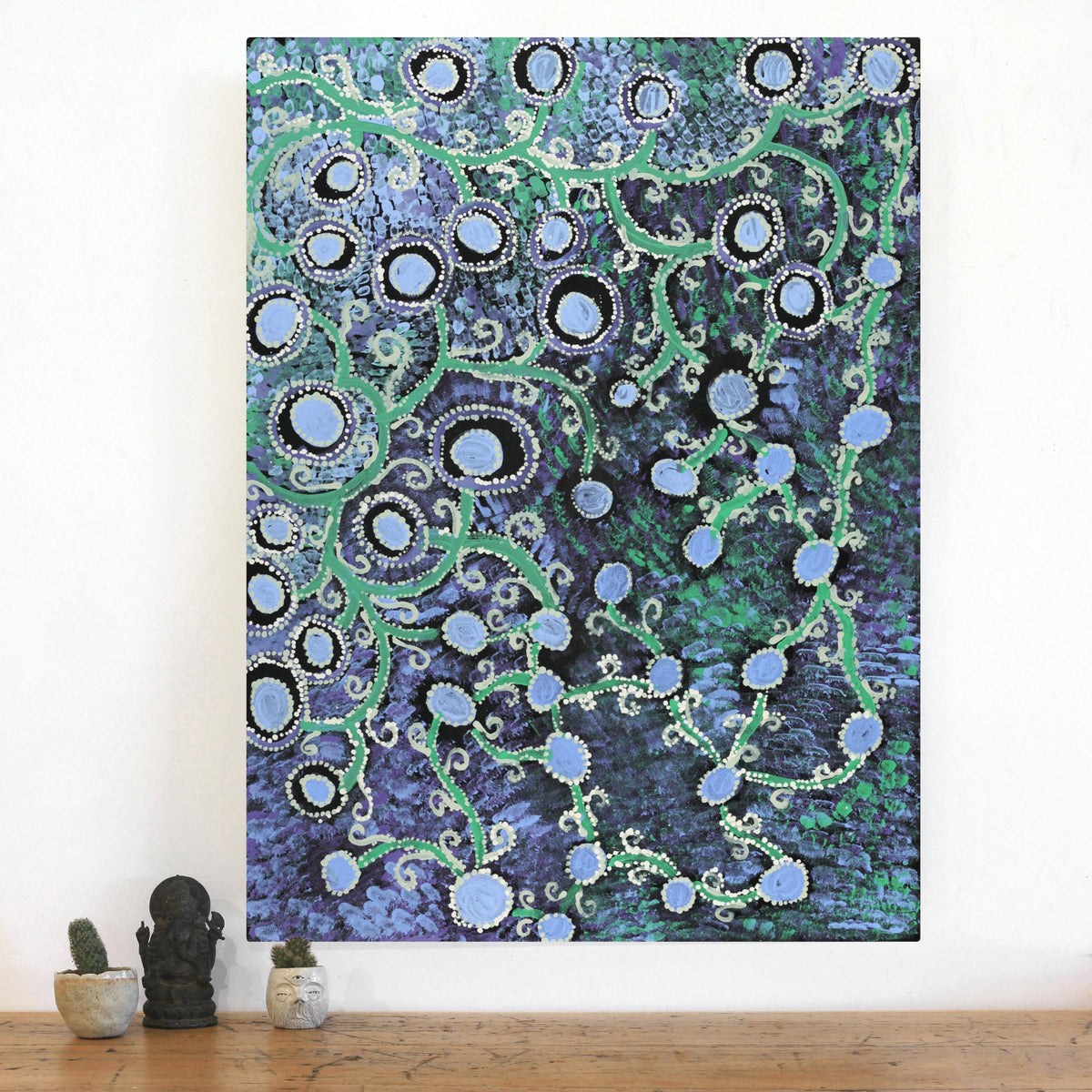 This painting shares plant elements from a broader Dreaming narrative.