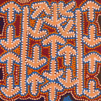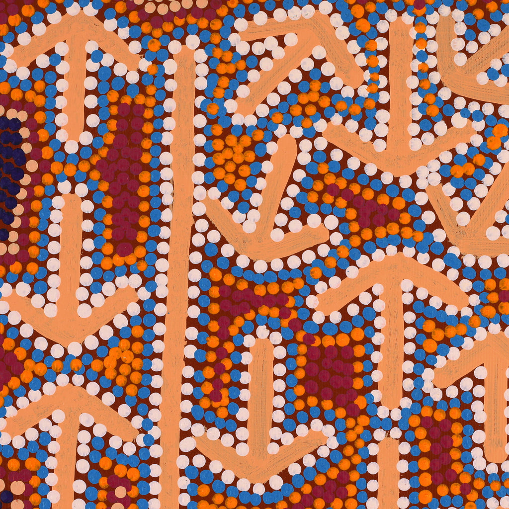 Jeffrey began painting with Warlukurlangu Artists Aboriginal Corporation, an Aboriginal owned and governed art centre located in Yuendumu and Nyirripi in 2021. He paints his father’s and grandfather’s Yankirri Jukurrpa (Emu Dreaming) - Ngarlikirlangu and Lukarrara Jukurrpa (Desert Fringe-rush Seed Dreaming), Jukurrpa stories relating directly to his land, its features and the plants and animals that inhabit it. The have been passed down through the generations for millennia. He uses an unrestricted palette, blending his own patterns with ancestral motifs to depict his traditional Jukurrpa.