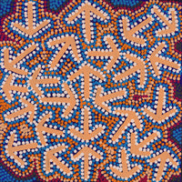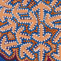 Jeffrey began painting with Warlukurlangu Artists Aboriginal Corporation, an Aboriginal owned and governed art centre located in Yuendumu and Nyirripi in 2021. He paints his father’s and grandfather’s Yankirri Jukurrpa (Emu Dreaming) - Ngarlikirlangu and Lukarrara Jukurrpa (Desert Fringe-rush Seed Dreaming), Jukurrpa stories relating directly to his land, its features and the plants and animals that inhabit it. The have been passed down through the generations for millennia. He uses an unrestricted palette, blending his own patterns with ancestral motifs to depict his traditional Jukurrpa.