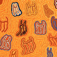 Kelly Napanangka Michaels was born in 1965 and lives in Yuendumu, an Aboriginal settlement located 290 kms north west of Alice Springs. She attended the local school in Yuendumu. She is married to Roy Jupurrurla Curtis, the local Indigenous Police Aid. They have four daughters. She is a grandmother and spends a lot of time caring for her grandchildren. As often as possible she travels to Nyirripi a settlement 160 kms west of Yuendumu where two of her daughters live. She has been painting with Warlukurlangu Artists Aboriginal Corporation since 1987, an Aboriginal owned and governed art centre located in Yuendumu. She paints her Dreaming stories which are directly related to her traditional country, its land, features and animals such as Mina Mina Jukurrpa (Mina Mina Dreaming), Marrjadi Jukurrpa (Ceremonial and Hairstring Dreaming) Karnta Jukurrpa (Women's Dreaming) andYarla Jukurrpa (Bush Potato Dreaming). Kelly loves painting particularly her Mina Mina and Dancing patterns and designs. These patterns and designs depicting her stories have been passed down through her family for millennia. Kelly loves to spend time hunting for traditional bush foods in the countryside surrounding Yuendumu and Nyirripi. She also loves playing softball and basketball and is a keen competitor at the annual Yuendumu Sports weekend.